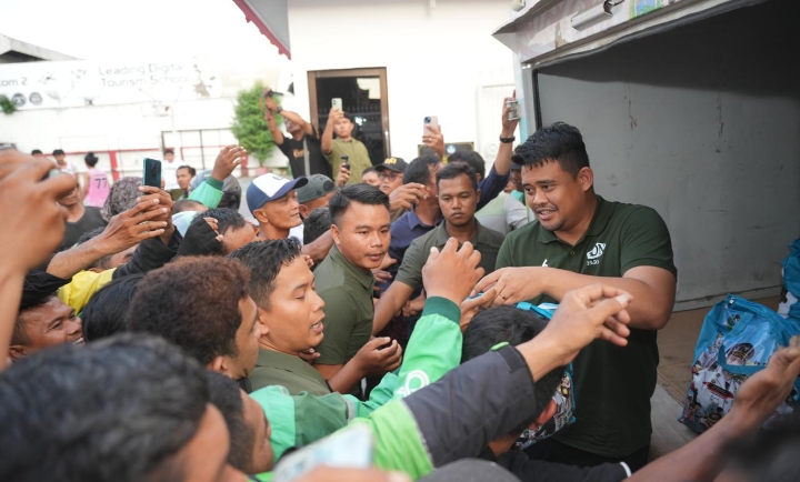 Tampak ratusan pengemudi ojek online (ojol) antusias mengambil paket sembako yang berisi beras, minyak makan, bubuk teh, gula dan indomie. Tak hanya pengemudi ojol, masyarakat yang melintas pun langsung menghentikan laju kendaraannya. Dan dengan cepat mengambil paket sembako yang dibagikan langsung oleh Gubernur Sumatera Utara Bobby Afif Nasution.