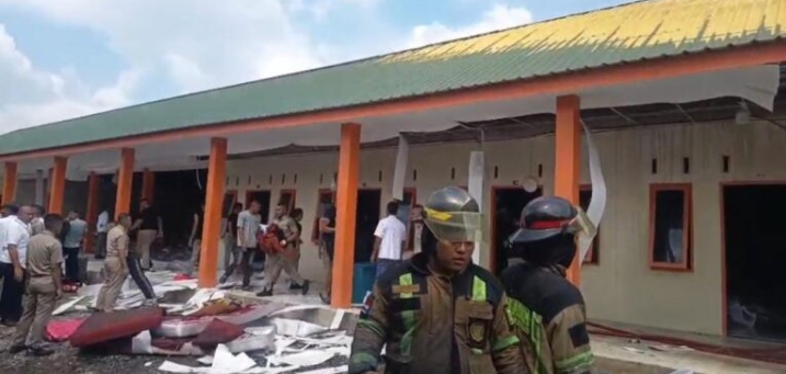 TERBAKAR: Asrama mahasiswa Institut Teknologi Sawit Indonesia (ITSI) di Jalan Rumah Sakit Haji, Desa Kenangan Baru, Kecamatan Percut Sei Tuan, Kabupaten Deli Serdang, Sumatera Utara terbakar, Senin (5/1/2026). (ist/sadamanews.com)