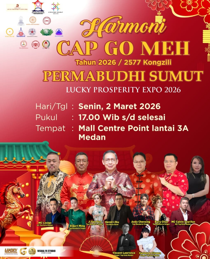 MEDAN – sadamanews.com – PD Permabudhi (Persatuan Umat Buddha Indonesia) Sumatera Utara (Sumut) akan merayakan Cap Go Meh 2026/2577 bertema “Harmoni Cap Go Meh” di Mall Centre Point lantai 3A Medan pada Senin (2/3/2026).