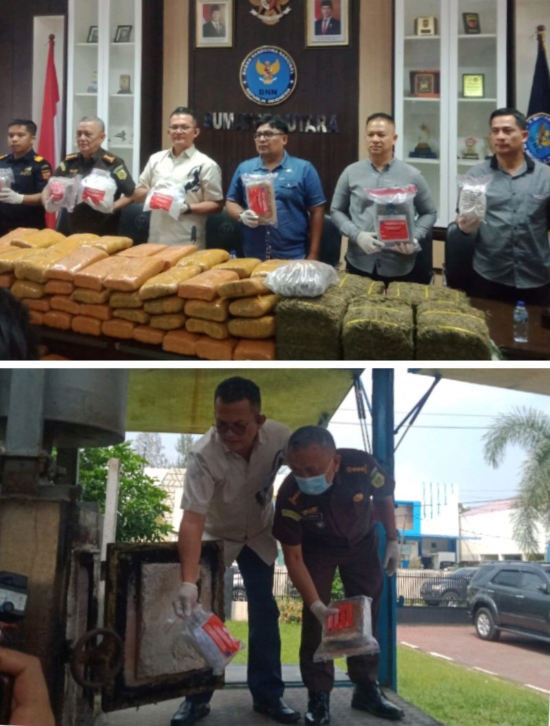 “Barang bukti dari 6 laporan kasus narkotika (LKN) telah dan akan dimusnahkan dengan rincian sabu dimusnahkan 2.954,94 gram, ganja dimusnahkan 4.830,87 gram. Sementara sebagian kecil barang bukti disisihkan untuk keperluan uji laboratorium dan pembuktian di persidangan,” terangnya.