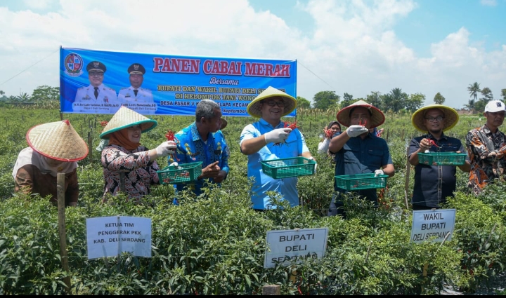 “Petani adalah ujung tombak ketahanan pangan. Karena itu, pemerintah akan terus hadir mendukung, baik melalui infrastruktur pertanian, penyediaan alat, maupun kepastian pasar,” kata Bupati Deli Serdang, dr H Asri Ludin Tambunan yang hadir bersama Wakil Bupati, Lom Lom Suwondo SS, pada Panen Raya Cabai di Desa Pasar V Kebun Kelapa, Kecamatan Beringin, Kamis (18/9/2025).