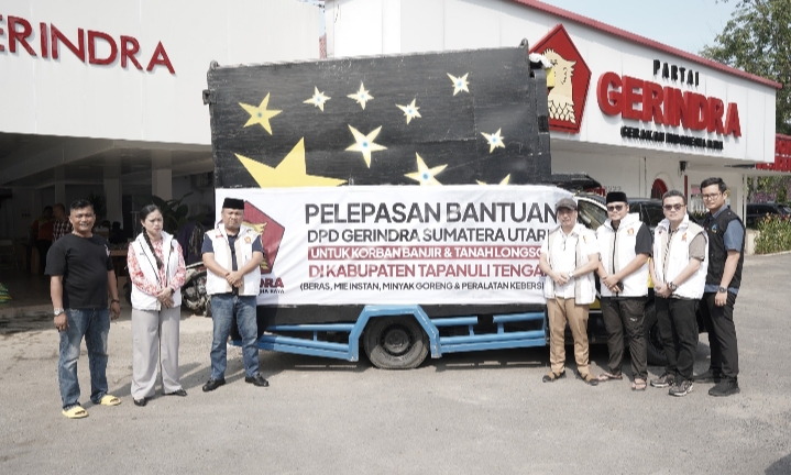 MEDAN – sadamanews.com – DPD Partai Gerindra Sumatera Utara (Sumut) bersama Yayasan Hati Emas Indonesia mengirimkan bantuan sembako untuk korban bencana di wilayah Tapanuli Tengah (Tapteng).