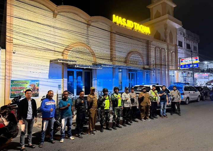 PATROLI: Kapolsek Medan Area, AKP M Ainul Yaqin, memimpin langsung kegiatan Patroli Gabungan 3 Pilar unsur Forkopimcam Kecamatan Medan Area dan Kecamatan Medan Denai. (ist/sadamanews.com)