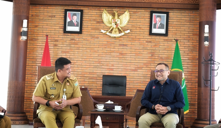 TERIMA: Gubernur Sumatera Utara (Sumut) Bobby Afif Nasution, didampingi OPD menerima audiensi jajaran Direksi PT Telkom di Kantor Gubernur Sumut, Jalan Pangeran Diponegoro Nomor 30 Medan, Senin (6/10/2025).