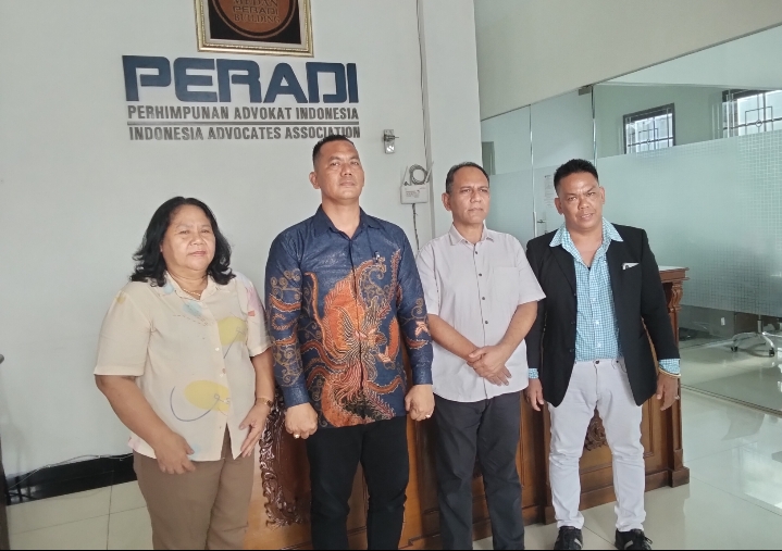 ATENSI: Ketua Peradi Medan, Dr Azwir Agus, SH, MHum, CIM didampingi Yunita Naibaho, SH, MH, Hendra Gunawan Hutabarat, SH, MH dan Johannes Sitanggang SH saat memberikan keterangan kepada wartawan di kantor Peradi Medan. (ist/sadamanews.com)