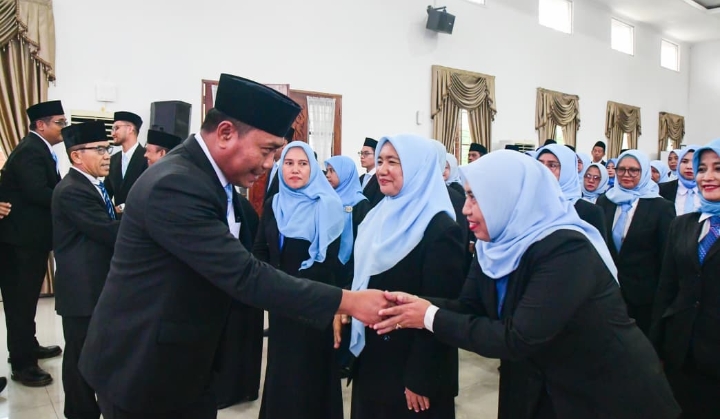 “Pelantikan hari ini merupakan bentuk kepercayaan negara kepada saudara-saudari sekalian. Kepercayaan ini harus dijawab dengan kinerja nyata, dedikasi tinggi, serta integritas yang tidak diragukan,” ucap Lom Lom Suwondo membacakan amanat Bupati.