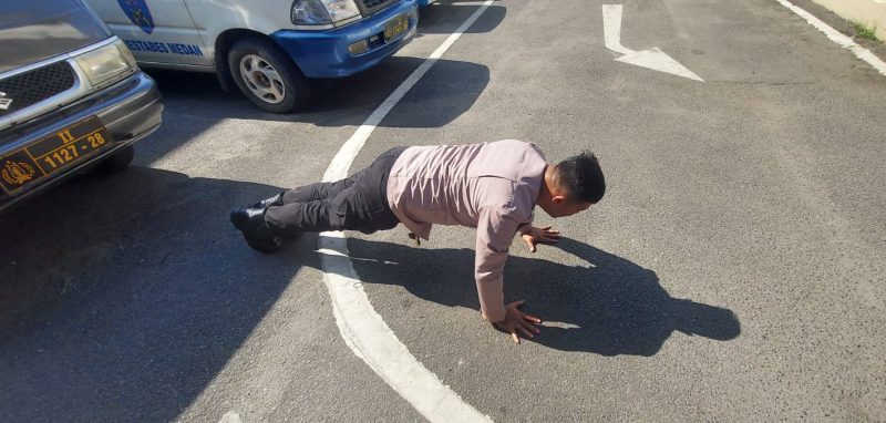 DIHUKUM : Oknum polisi yang dihukum push up. (ist/sadamanees.com)