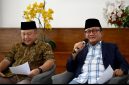 SAMBUT : Kepala Cabang BPJS Ketenagakerjaan Provinsi Gorontalo Dr. Ir. Sanco Simanulang,ST, MT, IPM, ASEAN Eng bersalaman dengan Bupati Boalemo Drs. Rum Pagau. (ist/sadamanews.com)