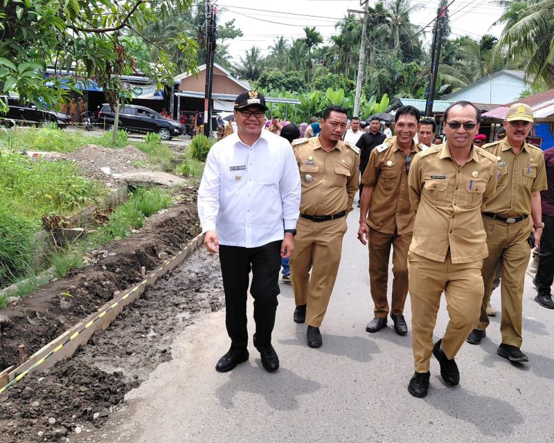 TINJAU: Bupati Deli Serdang, dr H Asri Ludin Tambunan saat meninjau pembangunan rigid di sisi kiri dan kanan jalan di Dusun IX, Desa Sei Mencirim, Kecamatan Sunggal. (ist/sadamanews.com)
