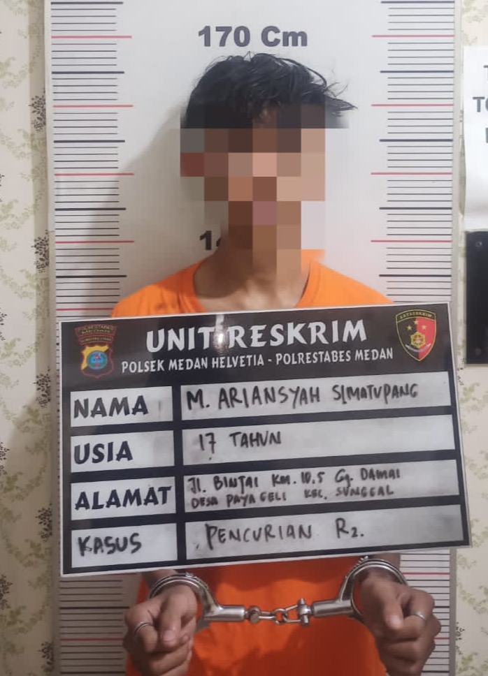 Pelaku berinisial MAS (17) warga Jalan Binjai Km 10,5 Gang Damai Desa Paya Geli, Kecamatan Sunggal, Deliserdang dengan kondisi babak belur diserahkan ke Polsek Medan Helvetia guna diproses lebih lanjut.
