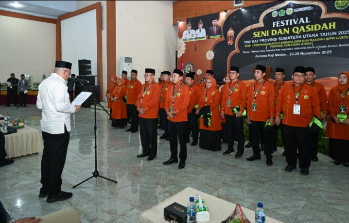 MEDAN – sadamanews.com – Penjabat (Pj) Sekretaris Daerah Provinsi Sumatera Utara (Sumut), Sulaiman Harahap, secara resmi membuka Festival Seni dan Qasidah Tingkat Provinsi Sumut Tahun 2025 di Asrama Haji, Jalan AH Nasution Medan, Senin (24/11/2025) malam.