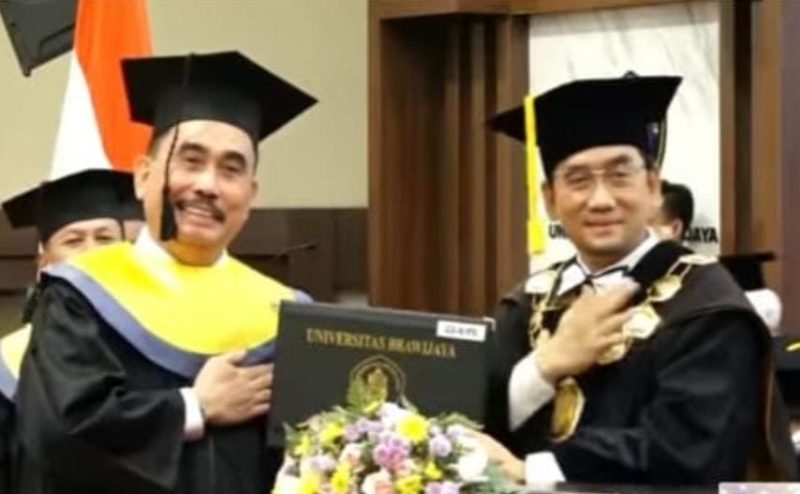 WISUDA: Rektor Universitas Brawijaya, Prof. Widodo, S.Si., M.Si., Ph.D.Med.Sc (kanan) saat mewisuda Dr Drs Hendrik H Sitompul MM. (ist/sadamanews.com)