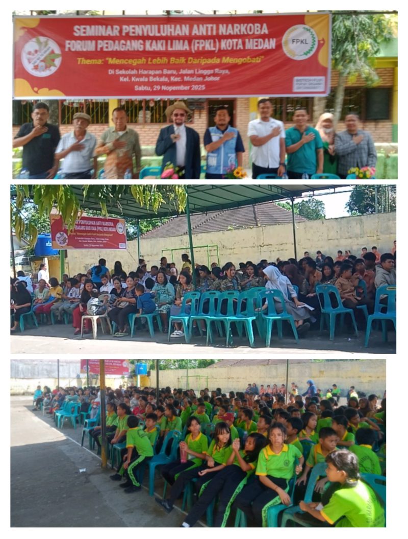 MEDAN – sadamanews.com – Seminar pencegahan narkoba yang digelar Forum Pedagang Pasar dan Pedagang Kaki Lima (FPKL) Kota Medan di Sekolah Harapan Baru, Jalan Lingga Raya, Kelurahan Kwala Bekala, Kecamatan Medan Johor Kota Medan pada Sabtu (29/11/2025) berjalan sukses dan meriah.