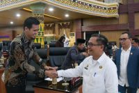 TANDA TANGANI : Gubernur Sumatera Utara (Sumut) Bobby Afif Nasution menandatangani Nota Kesepahaman antara Pemerintah Provinsi Sumut dan DPRD Provinsi Sumut tentang KUA dan…