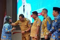 ANGKAT: Bupati Deli Serdang, dr H Asri Ludin Tambunan bersama Wakil Bupati, Lom Lom Suwondo SS kepada dua orang perwakilan dari 800 tenaga honor…