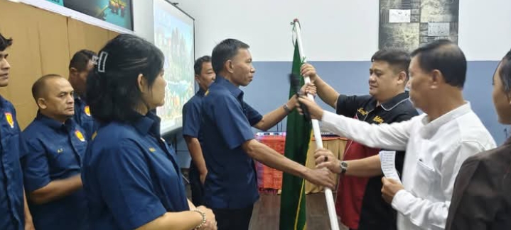 TERIMA: Ketua Pengkot POBSI Medan Ir Halomoan Samosir saat menerima pataka dari Ketua Pengprov POBSI Sumatera Utara, Salomo TR Pardede. (IST/sadamanews.com) MEDAN – KONI…