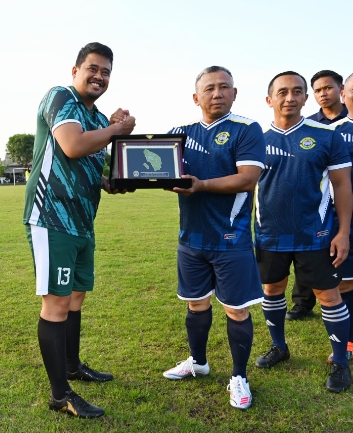(Foto : Dinas Komunikasi dan Informatika Prov.Sumut / Munawar Harahap) SALING TUKAR: Gubernur Sumut Bobby Nasution selaku Ketua Tim Pemprov Sumut dan Brigjen TNI…
