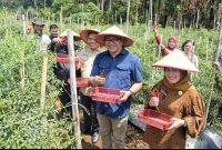 PANEN: Bupati Deli Serdang, dr H Asri Ludin Tambunan bersama Wakil Bupati, Lom Lom Suwondo SS melakukan panen cabai bersama petani di Desa Perpanden,…