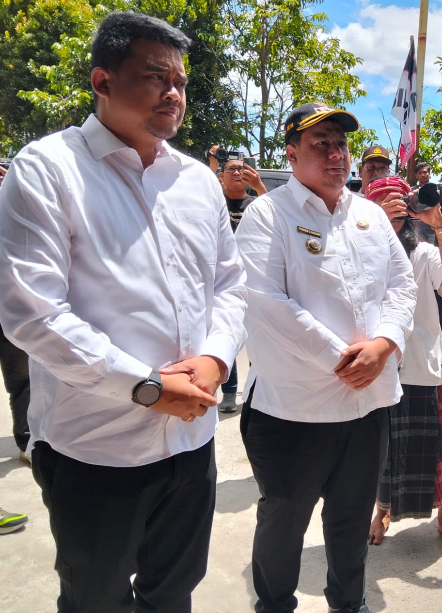 KUNJUNGI: Gubernur Sumatera Utara (Sumut), Muhammad Bobby Afif Nasution (kiri) dan Bupati Samosir Vandiko Timotius Gultom (kanan). SAMOSIR – Gubernur Sumatera Utara (Sumut), Muhammad…
