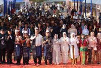FOTO BERSAMA: Wakil Gubernur Sumatera Utara (Sumut) Surya foto bersama pada Pagelaran Seni Budaya Daerah (PSBD) Asahan VI Tahun 2025 di Lapangan PSBD Asahan…