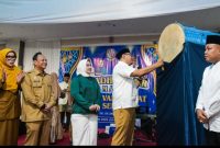 BUKA: Bupati Deli Serdang, dr H Asri Ludin Tambunan bersama Ketua TP PKK, Ny Jelita Asri Ludin Tambunan didampingi Direktur BUMD Bhineka Perkasa Jaya,…