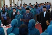LANTIK: Bupati Deli Serdang, dr H Asri Ludin Tambunan melantik 73 pejabat di lingkungan Pemerintah Kabupaten Deli Serdang di Aula Cendana Lantai II Kantor…