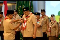 LANTIK : Gubernur Sumatera Utara (Sumut) Muhammad Bobby Afif Nasution bersama Ketua Kwartir Nasional Gerakan Pramuka Budi Waseso, Wakil Gubernur Sumut Surya, Ketua DPRD…