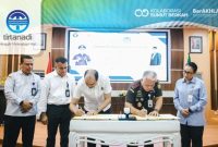 TANDA TANGANI: Dirut Perumda Tirtanadi Provinsi Sumatera Utara, Ardian Surbakti bersama Kajatisu Harli Siregar, menandatangani nota kesepahaman (MoU) terkait penanganan perkara di bidang Perdata…