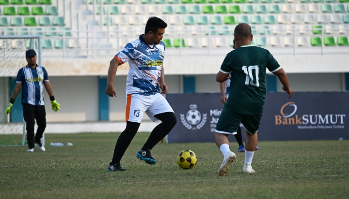 Diskominfo Sumut / Fahmi Aulia MINI SOCCER JURNALIS CHAMPIONSHIP Gubernur Sumatera Utara (Sumut) Muhammad Bobby Afif Nasution ikut menunjukkan kebolehannya bermain di lapangan hijau….