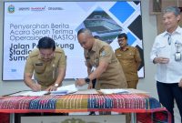 (Foto : Alexander AP Siahaan/Diskominfo Provsu). TANDA TANGANI : Sekretaris Daerah Provinsi Sumatera Utara (Sumut) Togap Simangunsong menandatangani Berita Acara Serah Terima Operasional (BASTO)…