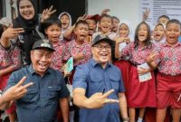PROGRAM: Bupati Deli Serdang Asri Ludin Tambunan dan Wakil Bupati Lom Lom Suwondo bersama murid sekolah dasar di Kecamatan Percut Seituan. (Dok/Ist/Diskominfo Deliserdang) DELISERDANG…