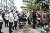 TINJAU: Bupati Deli Serdang, dr H Asri Ludin Tambunan meninjau gotong royong massal di Pasar III, Lubuk Pakam, sekaligus menyosialisasikan kepada para pedagang untuk…