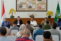 ATASI: Kepala Dinas Lingkungan Hidup dan Kehutanan (LHK) Sumut Heri W Marpaung bersama Perwakilan Pemerintah Kota Medan dan Pemerintah Kabupaten Deliserdang pada Temu Pers…