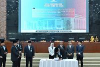 TANDA TANGANI : Gubernur Sumatera Utara (Sumut) Bobby Afif Nasution menandatangani Nota Kesepahaman antara Pemerintah Provinsi Sumut dan DPRD Provinsi Sumut tentang KUA dan…