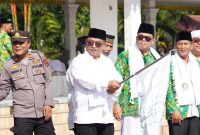 LEPAS: Asisten I Pemerintahan dan Kesejahteraan Rakyat, Drs Zainal Abidin Hutagalung MAP melepas peserta Manasik Haji Akbar MDTA ke-14 Tahun 2026 M/1447 H yang…