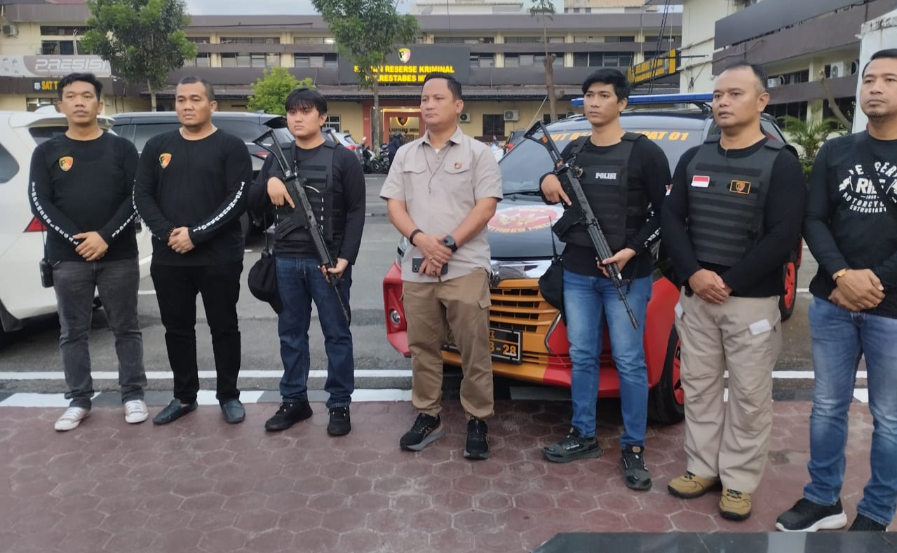 TEMBAK: Kasat Reskrim Polrestabes Medan, Kompol Jama Purba saat menunjukkan barang bukti. MEDAN – Tim Sat Reskrim Polrestabes Medan melakukan perburuan terhadap para pelaku…