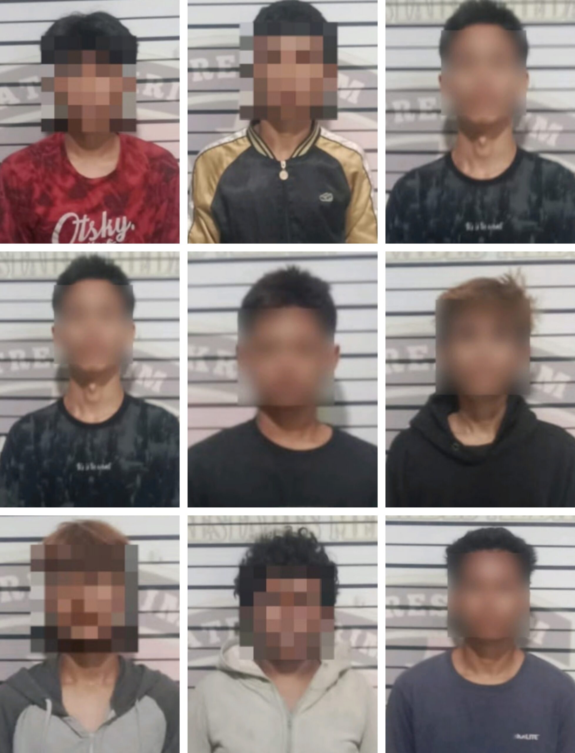 DIAMANKAN : Sembilan remaja bersenjata tajam diringkus personel Polsek Sunggal, Sabtu (9/8) di Jl. Setia Sama Desa Sunggal Kanan Kecamatan Sunggal Kabupaten Deliserdang. (sormin/sadamanews.com)…