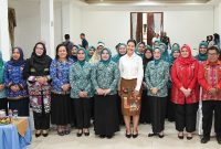 FOTO BERSAMA: Ketua TP PKK Sumut, Ny Kahiyang Ayu Bobby Nasution dan Ketua TP PKK Deli Serdang, Ny Jelita Asri Ludin Tambunan bersama pengurus…