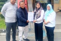 LAPORKAN: Kabid Kesmas Dinkes Deli Serdang, dr Hj Lenni Estiani (kedua dari kanan pakai jilbab hitam motif batik) menunjukkan laporan polisi atas kasus dugaan…