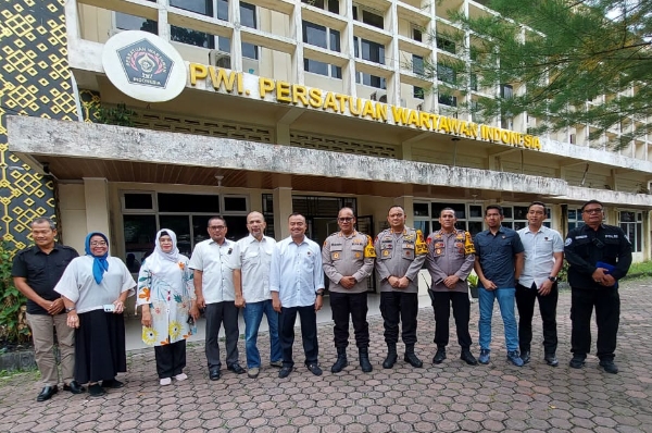 FOTO BERSAMA: Kapolrestabes Medan Kombes Pol Gidion Arif Setyawan, S.I.K., SH., M.Hum bersama Ketua PWI Sumut H Farianda Putra Sinik dan pengurus lainnya saat…