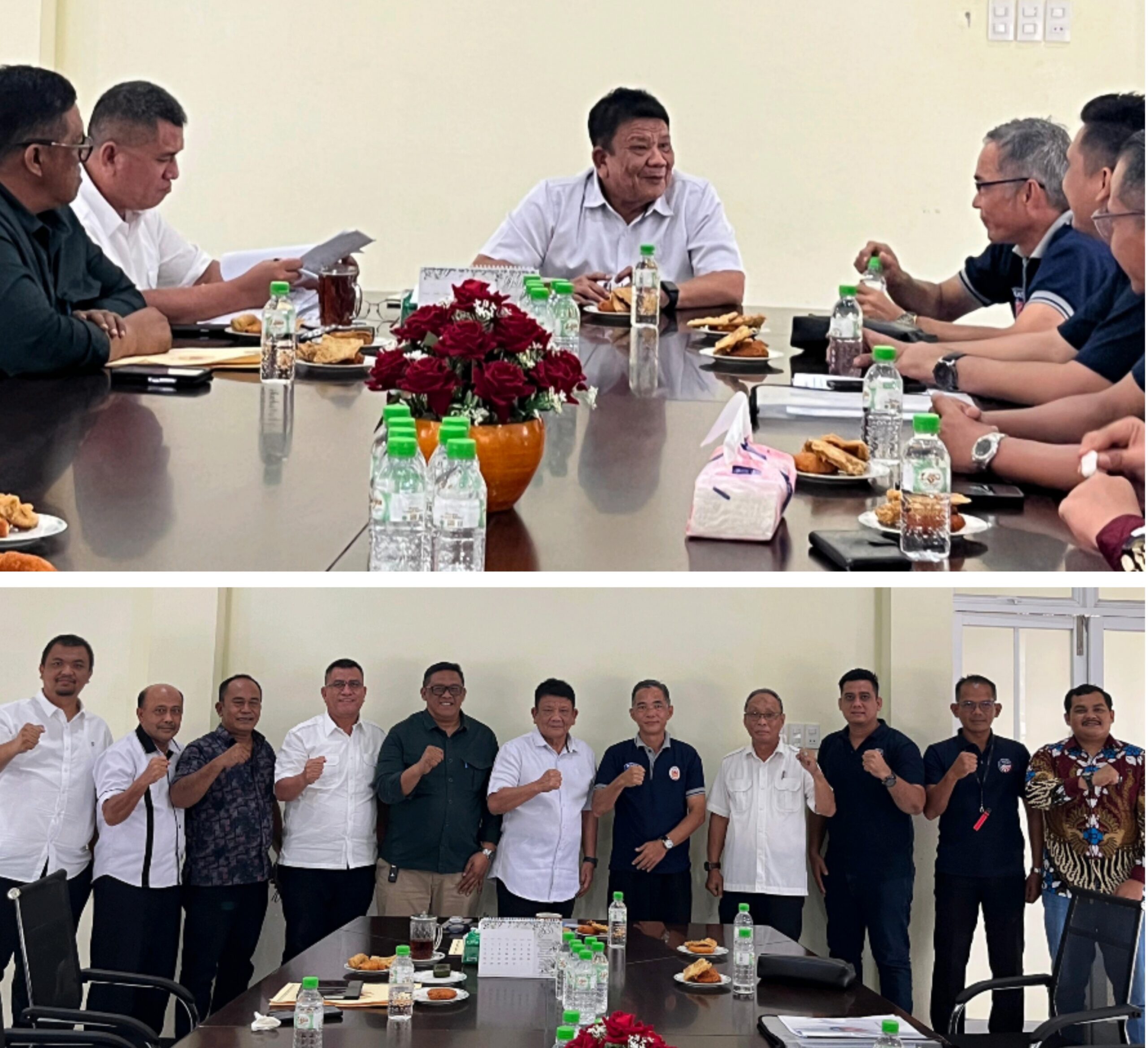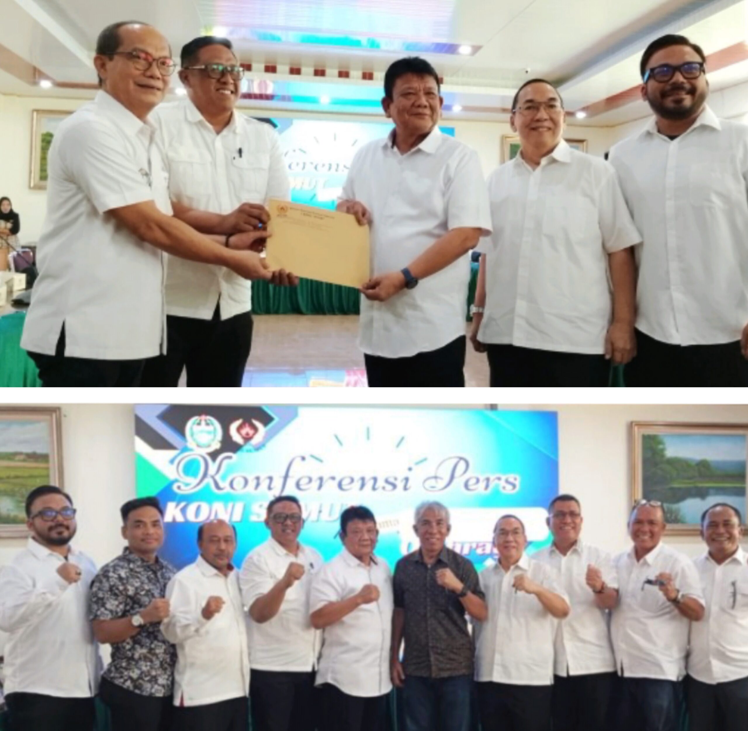 FOTO BERSAMA: Hatunggal Siregar, John Lubis foto bersama dengan pengurus KONI Sumut lainnya. Dan bawah, Hatunggal Siregar foto bersama dengan Ketua Pengprov IKASI Sumut,…