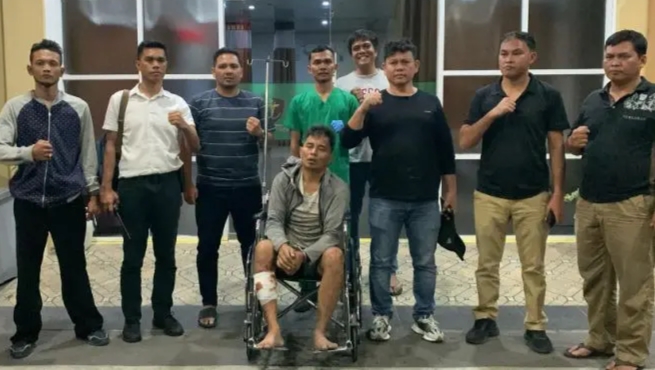 DITEMBAK: Pelaku saat memakai kursi roda. MEDAN – Curi sepeda motor, kaki Nasrib Luthfi (35) warga Jalan Tempur, Percut Sei Tuan ditembak polisi. Kanit…