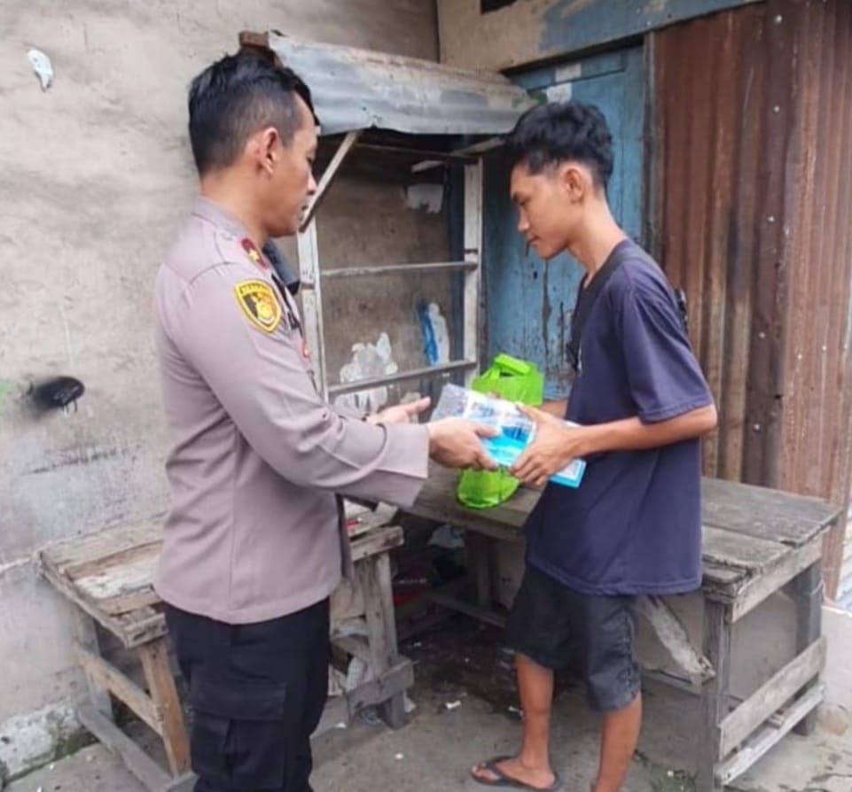 BANTU: Kapolsek Perbaungan, AKP Japri Binsar H. Simamora, SH, MH sat menyalurkan bantuan sosial (bansos) kepada warga kurang mampu di Desa Sei Buluh, Dusun…