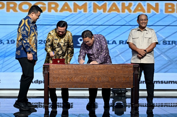 Diskominfo Sumut / Fahmi Aulia NOTA KESEPAHAMAN MAKAN BERGIZI GRATIS : Gubernur Sumatera Utara (Sumut) Bobby Nasution menyaksikan Penandatanganan Nota Kesepahaman antara Kepala Badan…
