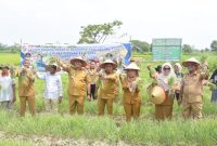PANEN: Bupati Deli Serdang, dr H Asri Ludin Tambunan dan Wakil Bupati, Lom Lom Suwondo SS melakukan panen bawang merah di lahan demplot Dinas…
