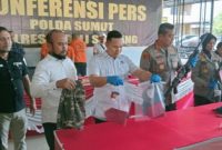 PAPARKAN: Kapolresta Deliserdang Pol Hendria Lesmana SIK didampingi Kasat Reskrim, Kompol Riski Akbar saat menunjukkan barang bukti di Aula terbuka Mapolresta, Rabu (20/8/2025). (ist/sadamanews.com)…