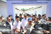 DAMPINGI: Gubernur Sumatera Utara (Sumut) Bobby Afif Nasution mendampingi Menteri Dalam Negeri (Mendagri) Tito Karnavian meninjau Hunian Sementara (Huntara) di Kelurahan Simarpinggan, Kecamatan Angkola…
