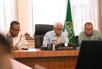 RAPAT: Wakil Gubernur Sumatera Utara Surya didampingi Asisten Administrasi Umum Muhammad Suib dan Kepala Kepala Badan Keuangan dan Aset Daerah (BKAD) Timur Tumanggor serta…