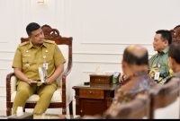 TERIMA: Gubernur Sumatera Utara (Sumut) Bobby Nasution menerima kunjungan kerja Wakil Menteri Pendayagunaan Aparatur Negara dan Reformasi Birokrasi Purwadi Arianto di Ruang Kerja Lantai…