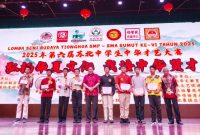 FOTO BERSAMA: Ketua PEXI Sumut, dr. Ferry Soemardi beserta Sekretaris PEXI Sumut foto bersama dengan para juara catur Xiang Qi / Catur Gajah antar…